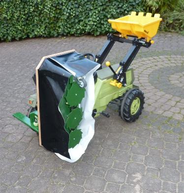 das auch bei uns im Hause wichtige Landwirtschaftliche Gräte nicht fehlen dürfen, ist wohl klar.Hier möchte ich euch mein selbst hergesteltes Mähwerk für RollyToys Traktoren zeigen.